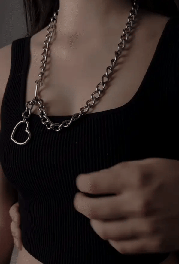 The interlocking heart design and bold chain give just the right amount of edge, passion, and ‘you know exactly what you’re doing’ energy.